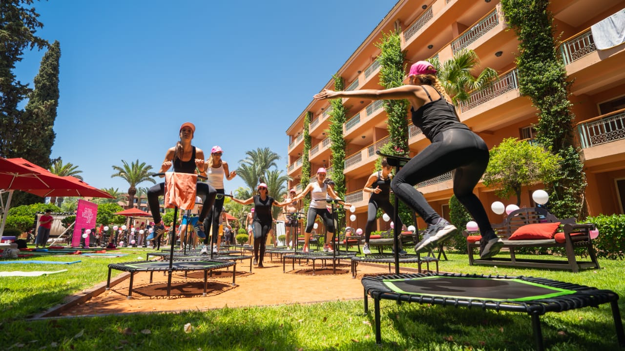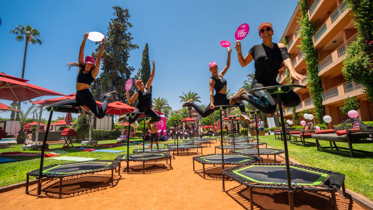 Le Marrakech Jumping est une salle de sport situé à Marrakech dédié au Jumping fitness, un sport ludique qui provoque un afflux d’hormones de bien-être en associant légèreté et pesanteur. Cette activité permet un renforcement musculaire global tout en travaillant l’équilibre. L’interaction dynamique de la force, de l’équilibre et de la coordination permet d’oublier le quotidien en se défoulant.