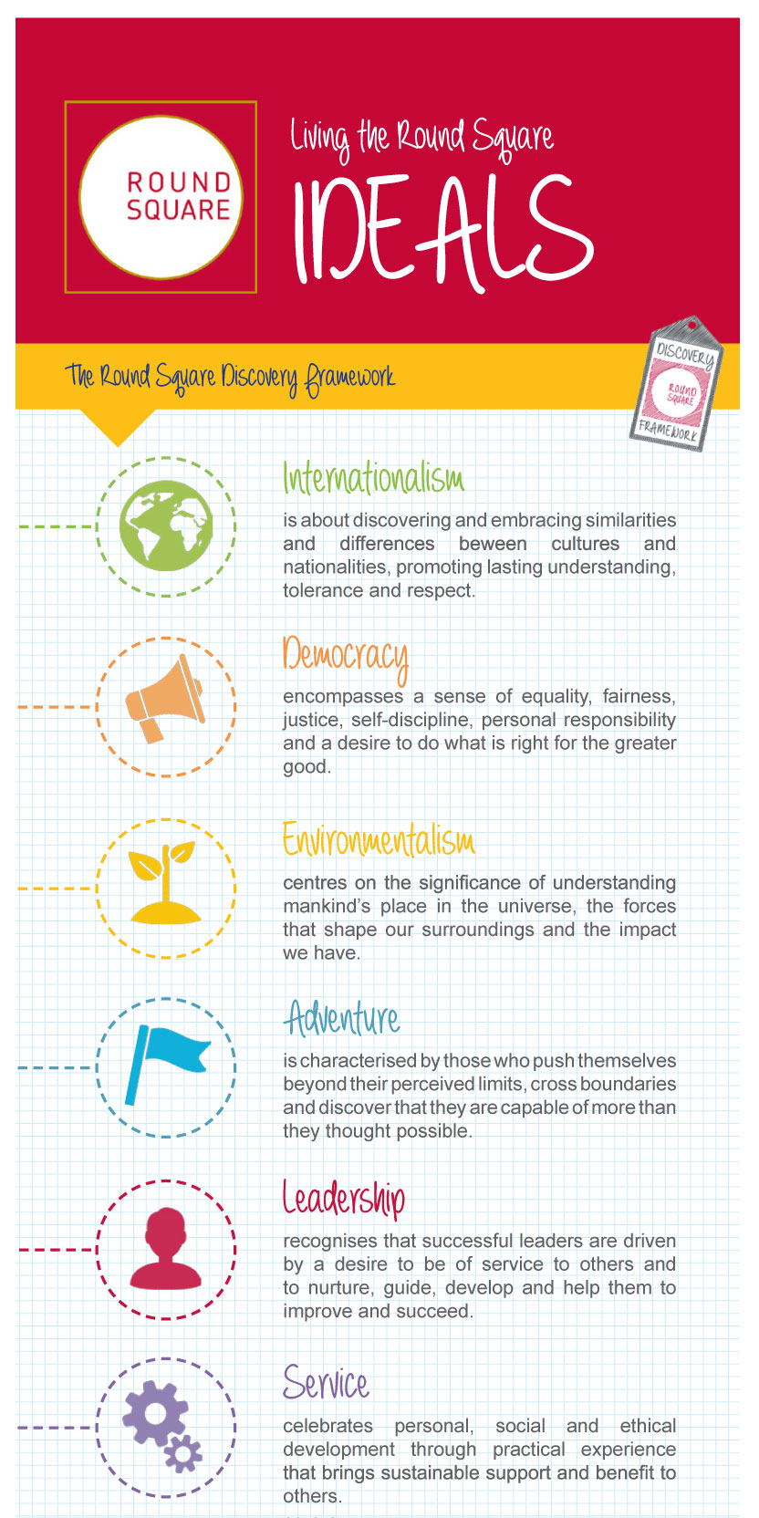Round Square schools are characterised by a shared belief in an approach to education based on six pillars, our IDEALS, drawn from the theories of education philosopher Kurt Hahn.